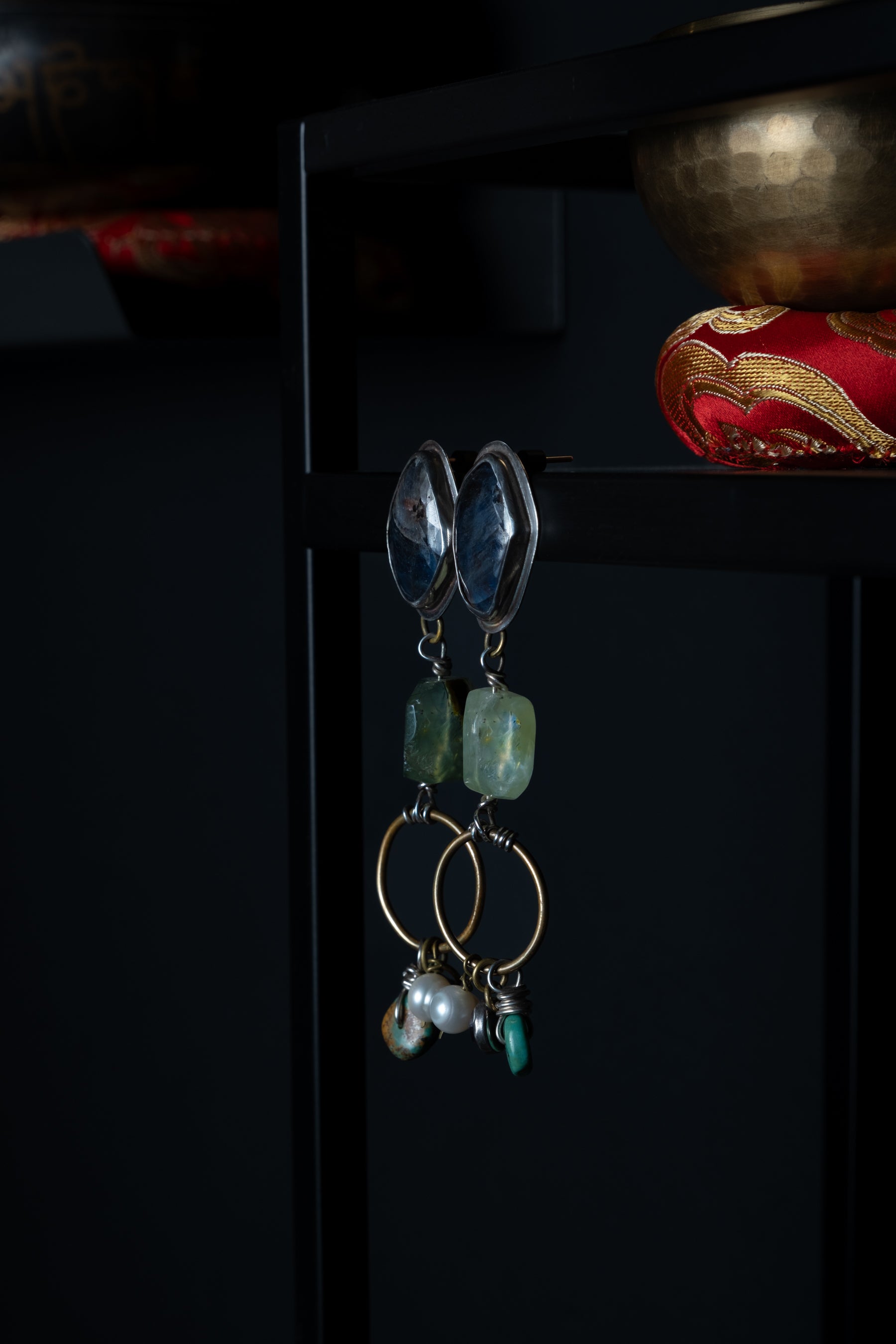 Sapphire for wisdom, prehnite for healing, turquoise for protection, amethyst for calm, and pearl for purity.